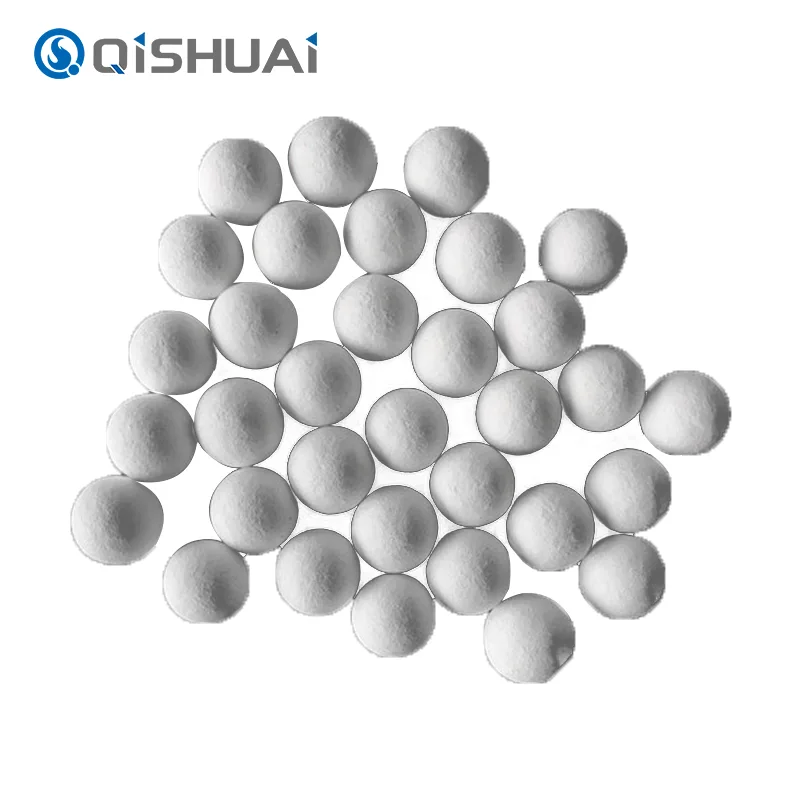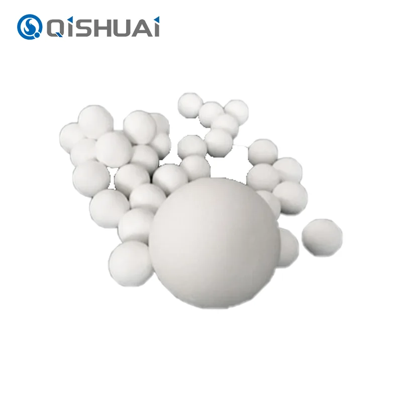 Shandong Qishuai தயாரித்த உயர்தர அலுமினா பந்துகள் அனைத்தும் மிக அதிக கடினத்தன்மை, நல்ல இரசாயன நிலைப்புத்தன்மை மற்றும் அதிக வெப்ப எதிர்ப்பு (1600°C) கொண்டவை. 0.5 மிமீ முதல் 10 மிமீ வரையிலான துகள் அளவுடன் பல்வேறு விவரக்குறிப்புகள் கிடைக்கின்றன. முக்கிய பயன்பாடுகளில் அரைத்தல் மற்றும் மெருகூட்டல், வினையூக்கி கேரியர், அட்ஸார்பென்ட், உயர் வெப்பநிலை பயனற்ற பொருள் போன்றவை அடங்கும்.