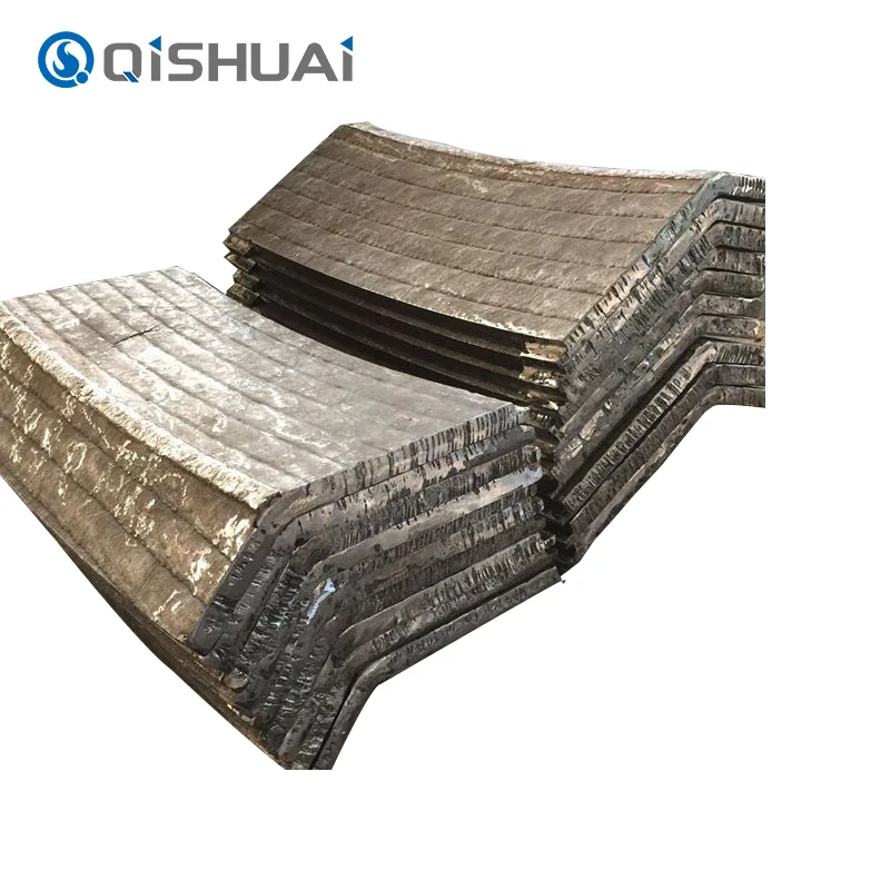 அணியும் தட்டுகளை நிறுவும் முன், வெல்டிங் அல்லது ஒட்டும் பிணைப்பின் தரத்தை உறுதிசெய்ய, மவுண்ட் செய்யும் மேற்பரப்பு தட்டையாகவும், சுத்தமாகவும், எண்ணெய், துரு அல்லது பிற அசுத்தங்கள் இல்லாததாகவும் இருக்க வேண்டும் என்பதை உறுதிப்படுத்தவும். பற்றவைக்கப்பட்ட மவுண்டிங்கிற்கான இணக்கமான இரசாயன கலவையுடன் மின்முனையைத் தேர்ந்தெடுப்பது. வெப்பத்தால் பாதிக்கப்பட்ட மண்டலத்தின் விரிசல்களைத் தவிர்ப்பதற்காக வெல்டிங் செய்வதற்கு முன் வேலைப் பகுதியை முன்கூட்டியே சூடாக்கவும். பிரிக்கப்பட்ட மற்றும் அடுக்கு வெல்டிங் முறையைப் பயன்படுத்துதல். அதிக வெப்பத்தைத் தவிர்க்க வெல்டிங் மின்னோட்டம் மற்றும் வெல்டிங் வேகத்தை கண்டிப்பாக கட்டுப்படுத்துதல். வெல்டிங்கிற்குப் பிறகு கட்டுப்படுத்தப்பட்ட குளிரூட்டலை மேற்கொள்வது.
